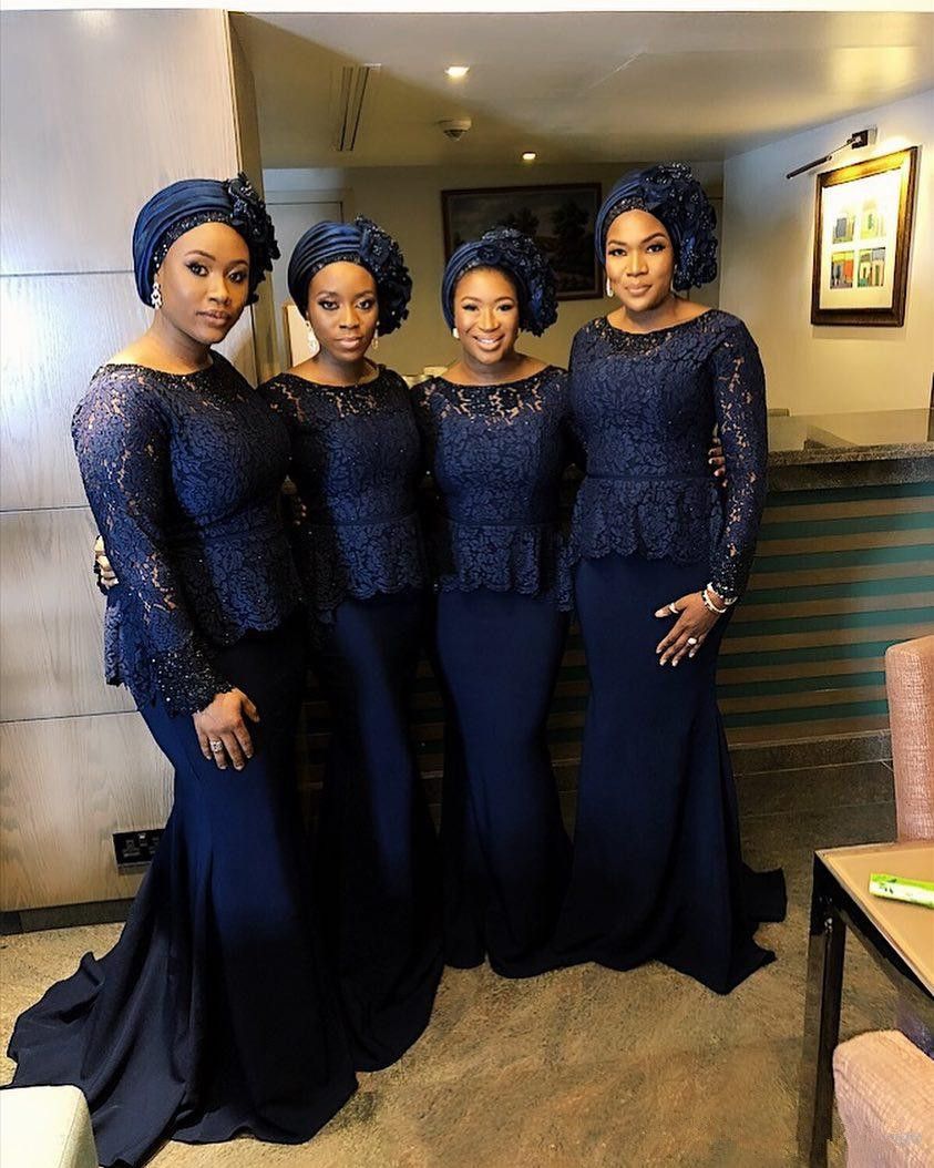 2020 New Navy Blue Lace Long Sleeve Mermaid Bridesmaid Dresses Plus Size African Black Girl Prom Dresses Long Formal Party Gown From Hellobuyerh 89 45 Dhgate Com